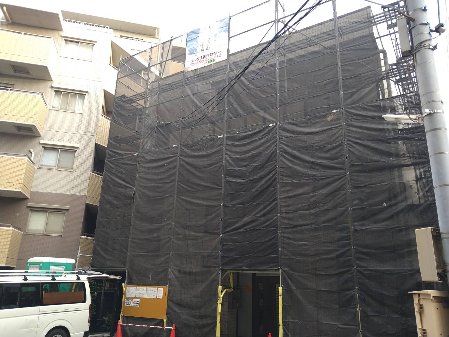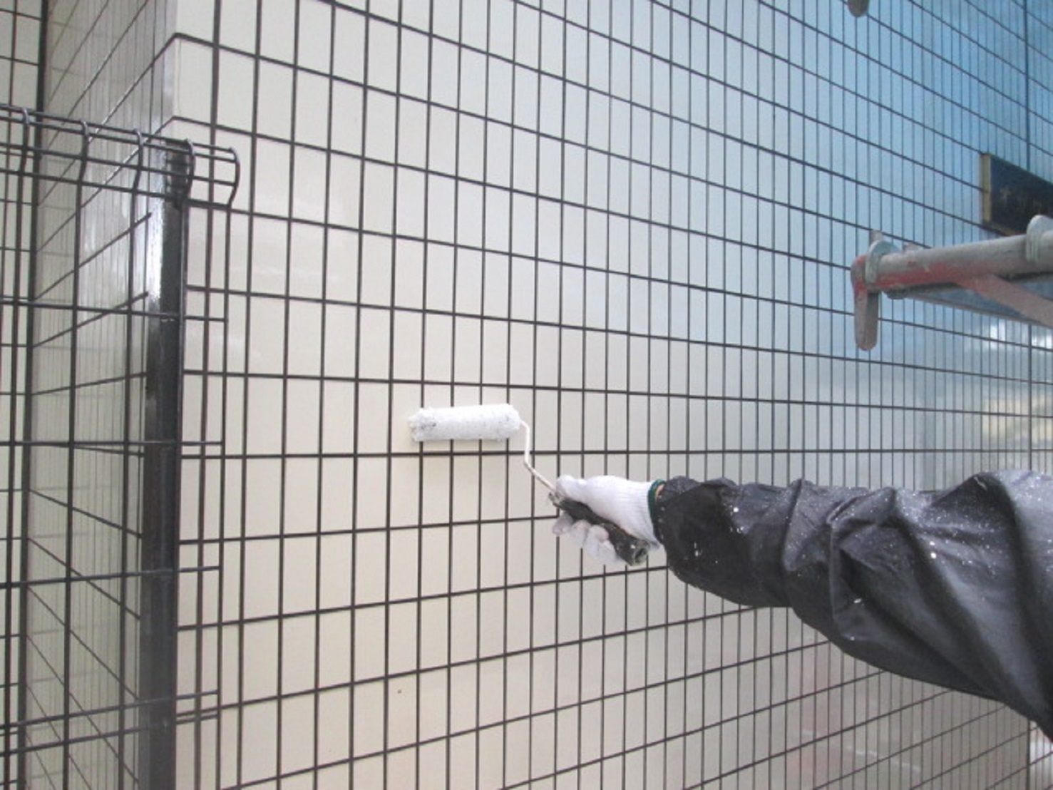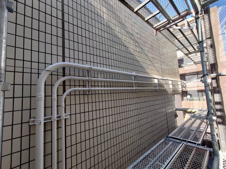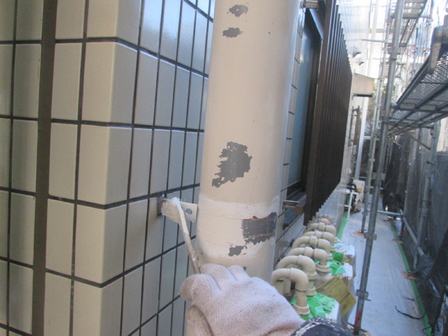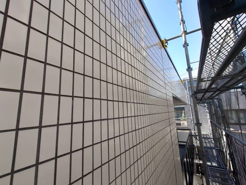 共同住宅外装修繕工事 2026/04/10 施工完了 施工前.作業中 ▶修繕内容 鉄骨造3階建ての外装大規模修繕の施工事例です。外壁はタイルの剥離(浮き)を確認し樹脂を穿孔注入、その上で疎水材を2回塗り、鉄部塗装、屋上防水、軒塗装などを行いました。 ▶施工データ 施工期間:2025年11月~12月 施工エリア:神奈川県横浜市 物件データ:鉄骨造共同住宅 築年数29年 ●本ページの内容(画像、テキスト、著作物)の権利は弊社に帰属します。無断での二次使用はお控えください。